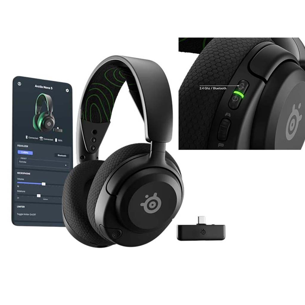 Headphones SteelSeries Arctis Nova 5X Wireless Gaming Noise Cancelling RGB USB-C ClearCast Mic Black